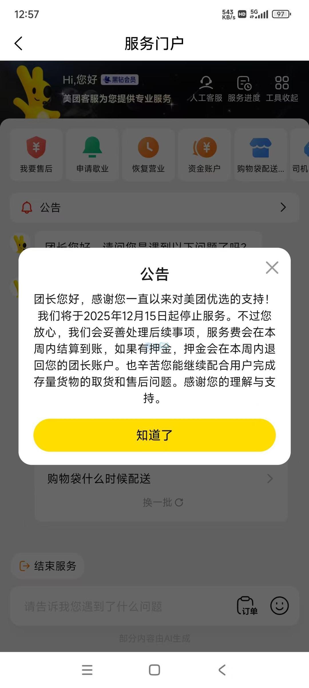 小区团长都发公告啦,美团优选在 2025 年 12 月 15 日在全国范围内全面关停了~