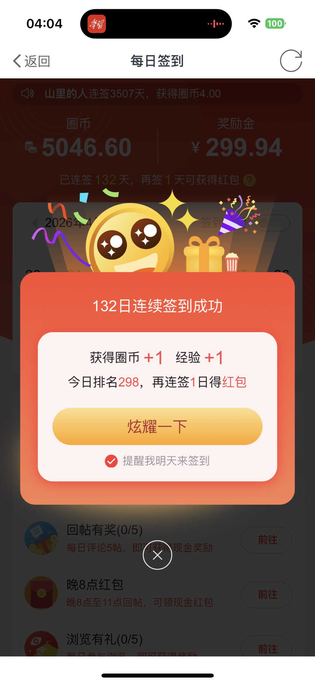 今日打卡,成功签到